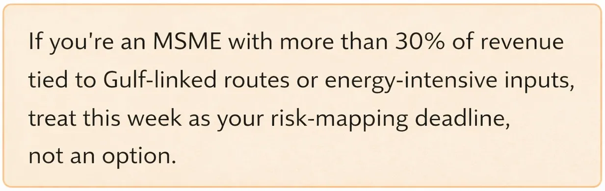 This guide gives MSMEs a survival plan for the 2026 Gulf crisis, turning oil shocks, shipping delays and cash‑flow stress into a clear, data‑driven action plan you can execute this week.